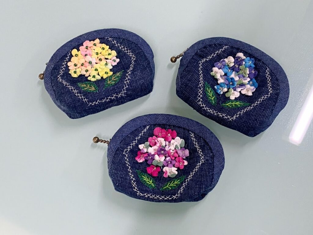 すべて手縫いで作っていただいており、表の花飾りはもちろん、裏地までカワイイ仕様です♪